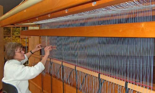 First I have to weave a couple of inches to establish a straight line of weft to which I will attach the cartoon.