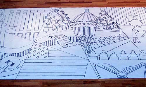 The design is first traced and enlarged to the final dimensions of the tapestry so that it may be used as a cartoon or map while I am weaving.